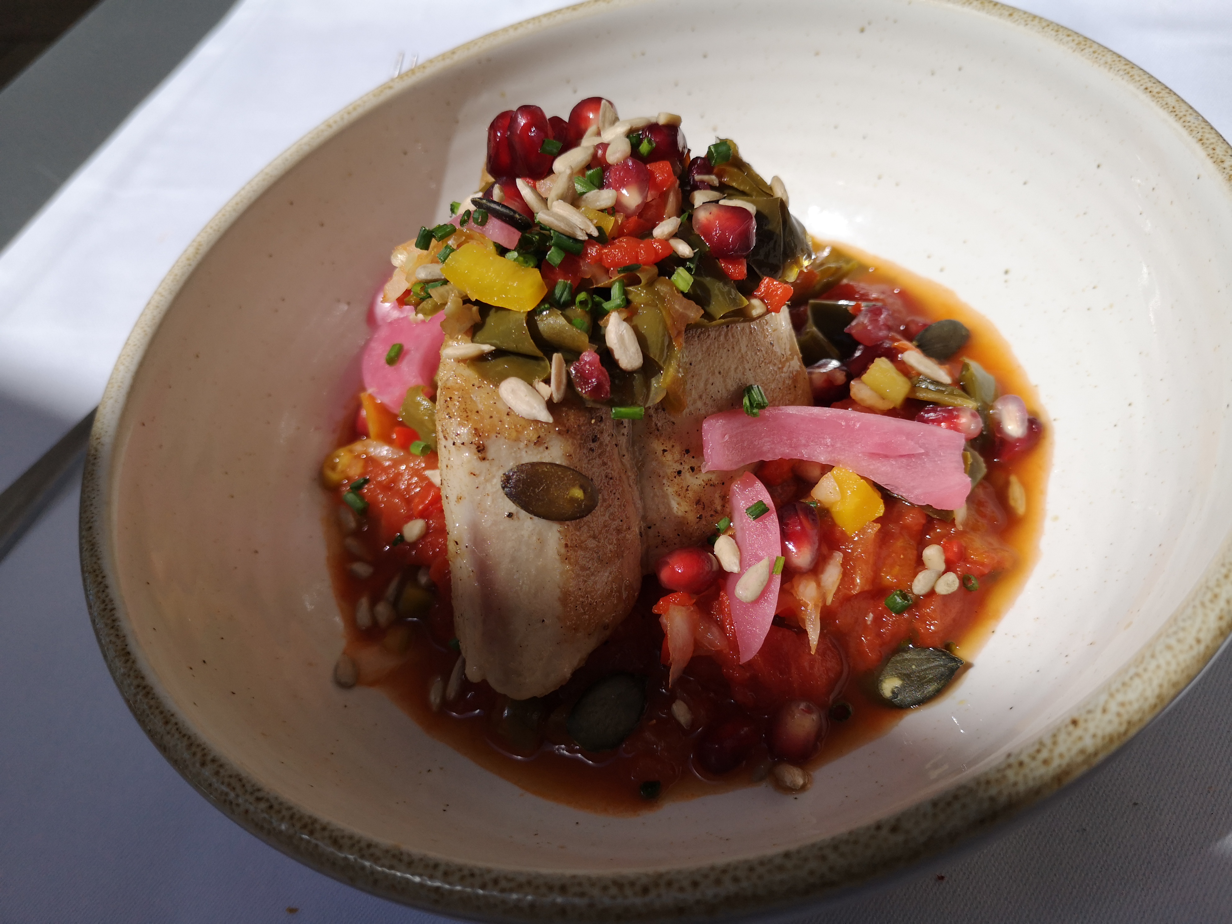 Restaurant très bien situé à proximité du port et derrière la mairie. Personnel très agréable. Très belle carte. Nous avons pris du dos de merlu et de la noix de St Jacques. Plats très bien présentés mais l'accompagnement du dos de merlu était froid et malgré une demande au personnel de salle, il est revenu à peine tiède. Ceci gâche le bilan de ce restaurant. Sinon il aurait eu 4 étoiles.