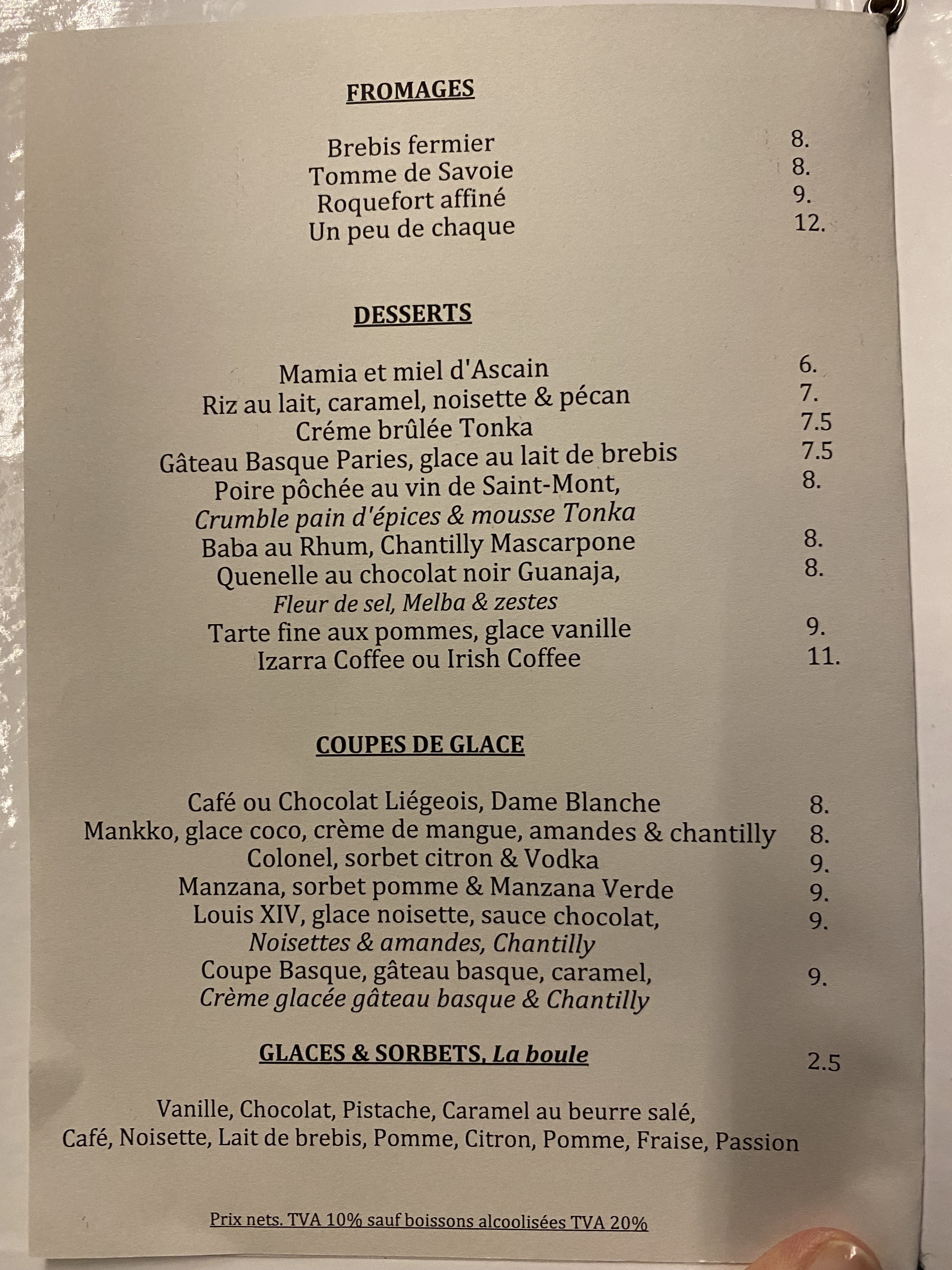 En vacances comme chaque année au pays Basque, nous sommes allés manger à la Txalupa.....entrée plat dessert au top, ultra frais et un serveur extra, disponible et accueillant. Digo offert....merci au patron. Je vous conseille la carte des poissons ultra frais. Merci encore pour ce bon moment.