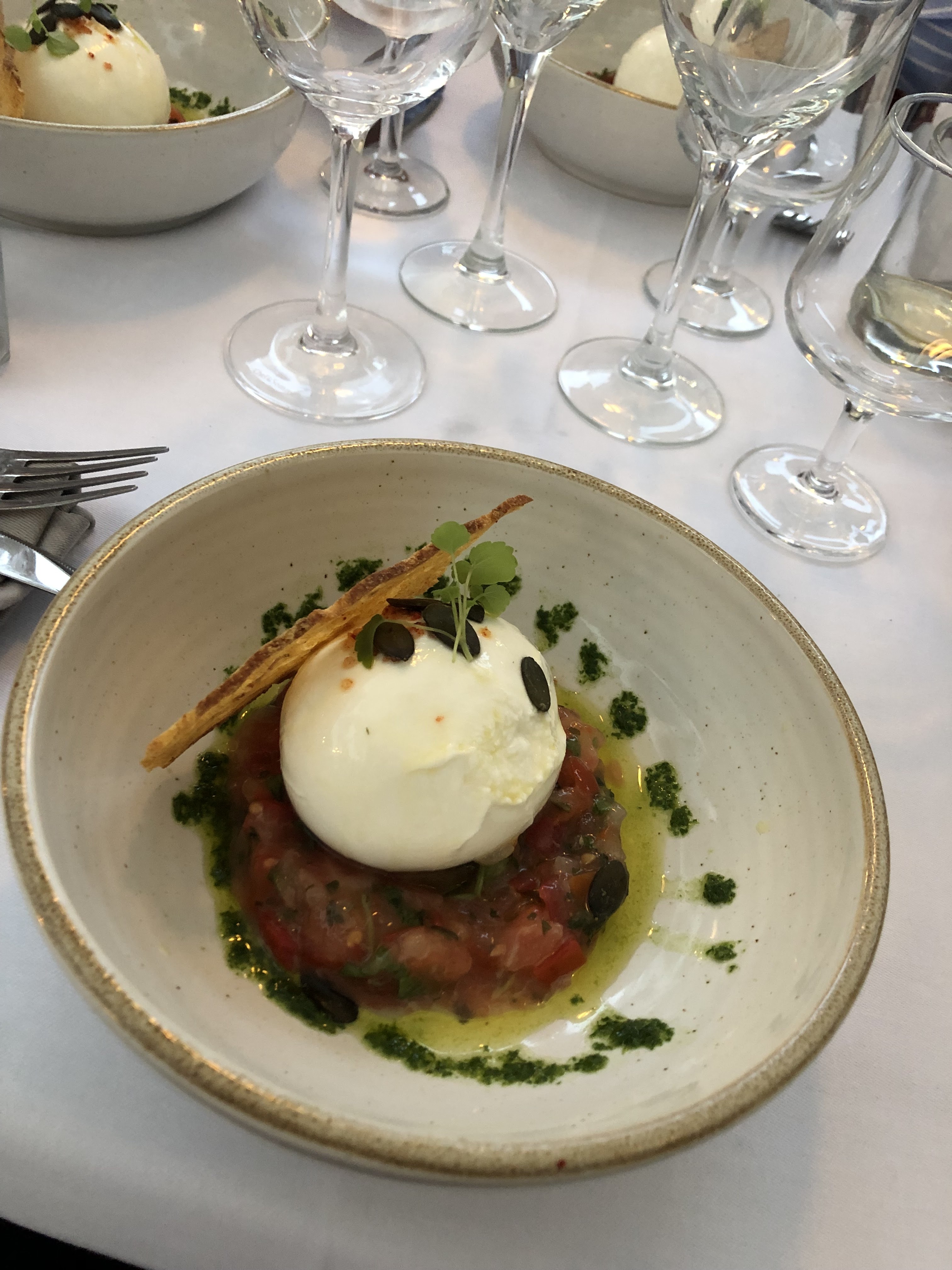 Premier dîner dans ce restaurant. Accueil sobre . Salle de restaurant claire et moderne. Nous avons commandé un merlu de ligne pour 2 personnes . Délicieux tout y était , 2 bémols cependant : Un peu plus de légumes aurait été apprécié et surtout … ma surprise a été de constater que le merlu ne nous a pas été servis , nous attendions ce service dans ce type de restaurant 🤔 Dessert une quenelle au chocolat noir divine !