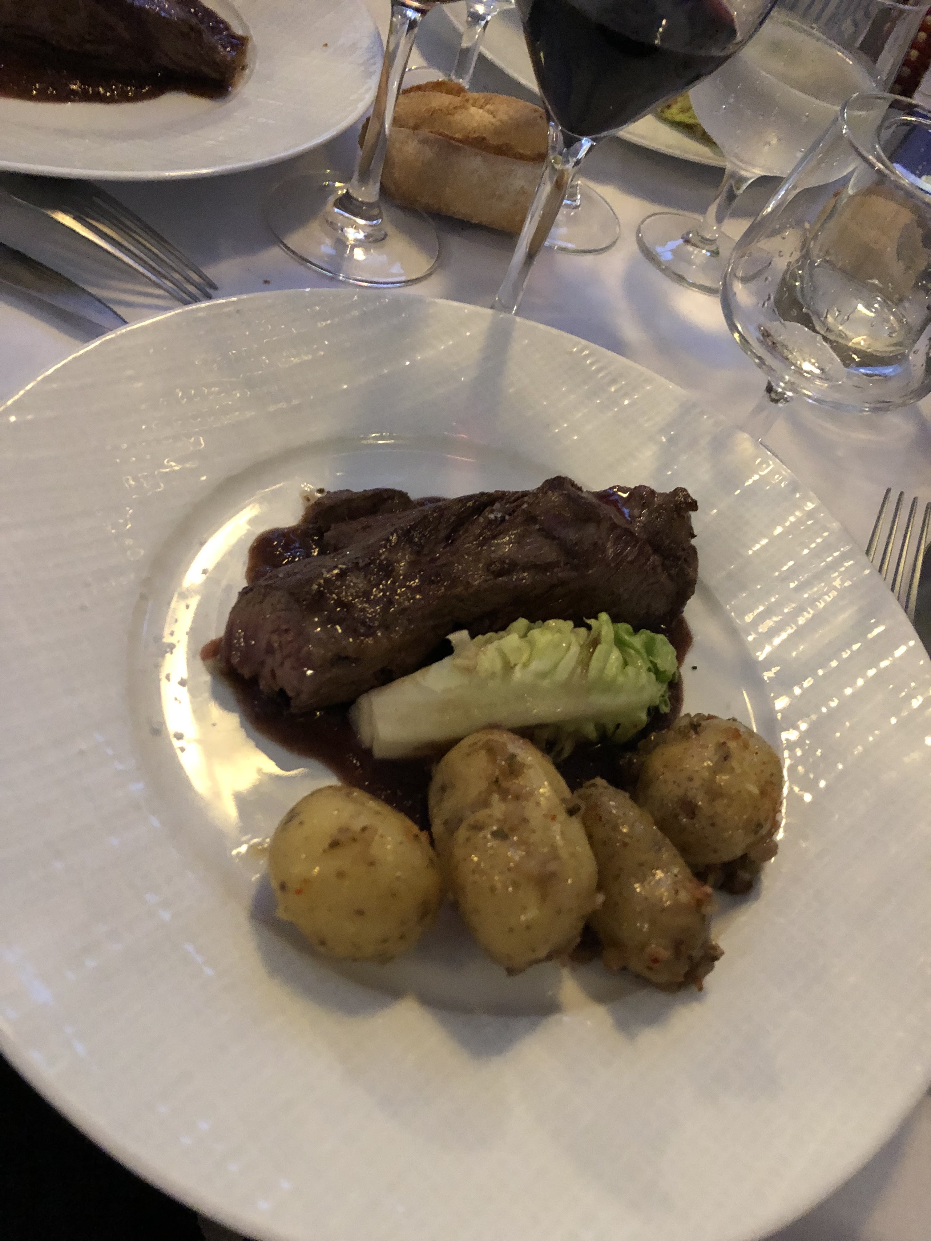 Après un super accueil et la possibilité d'avoir le dernière table sans réservation, nous entamons le repas pas un verre de rouge du pays, très bon et au prix correct. Ensuite, de super bulots parfaitement assaisonnés avant le plat. Et la, pour ma compagne qui prend le merlu : cuisson parfaite, accompagnements au top. De mon côté, je pars sur l'angus, très bien cuit mais avare sur la sauce (tranchée), et avec des accompagnements à la limite de la cantine ou du repas de curiste ! Que ce soit le coeur de sucrine coupé en 4 et posé dans l'assiette à la va vite sans une pointe de cuisson ou d'assaisonnement ou les 4 pauvres pommes de terre a l'eau sans un petit aller retour à la poêle avec quelques aromates ( ne serait-ce que du sel !) auraient drastiquement changé mon expérience :( Mon plat manquait juste un peu de cuisine, c'est bien dommage !